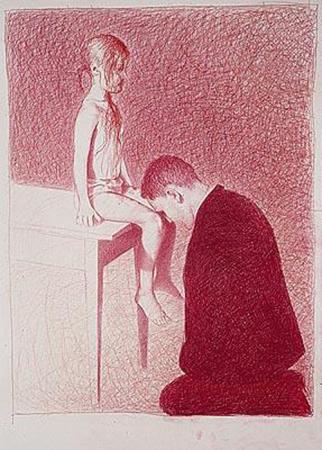 Я же, несмотря на близость экрана, находился в ином пространстве — пространстве детских ножек, болтающихся возле самого моего лица. В неровном киношном свете, меняющемся от бледно-голубого до насыщенно красного, серенькие колготки моей Незнакомки казались то серебристыми, мерцающими подобно ангельским одеяниям, то почти черными, отсылающими мое воспаленное воображение в квартал Красных Фонарей. И хотя мое желание разуть девочку можно было считать вполне невинным, руки мои предательски повлажнели, когда я, крадучись, взял ее за щиколотку.
